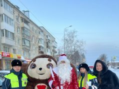 В Невьянске Полицейский Дед Мороз и Чебурашка напомнили о безопасности на дорогах