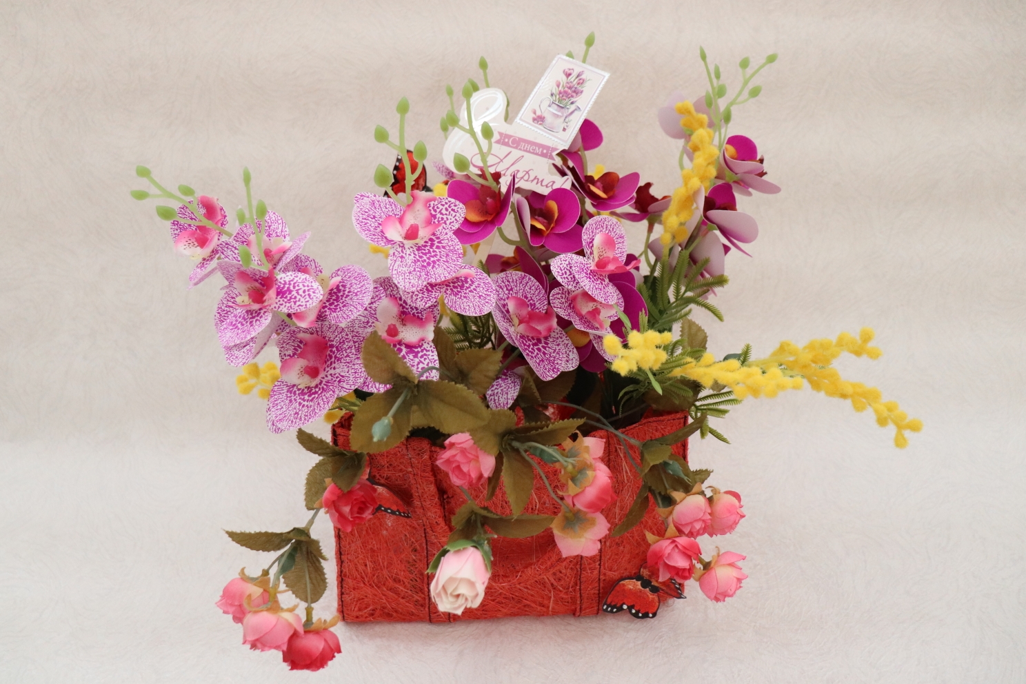 Осужденные из отряда № 1 создали композицию из вязаных зверьков с букетами цветов. Мастерицы из отряда № 2 изготовили декоративную поделку из текстиля, украшенную лентами и цветами. Участницы отряда № 3 представили сумочку, наполненную разнообразными цветами – от роз до орхидей и мимоз. Жюри особо отметило работу из отряда № 4 – вазу с огромными красными маками, выполненными из гофрированной бумаги.